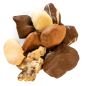 47% Schokolade (Zucker, Kakaobutter, VOLLMILCHPULVER, Kakaomasse, SÜSSMOLKENPULVER, Emulgator: SOJALECITHINE E322/476, Aroma), 13% Datteln, 13% Aprikosen, Zucker, 8% Ananas, 6% Apfelringe, 6% Feigen, 4% Sultaninen, 4% Pflaumen, Antioxidationsmittel SCHWEFELDIOXID.
